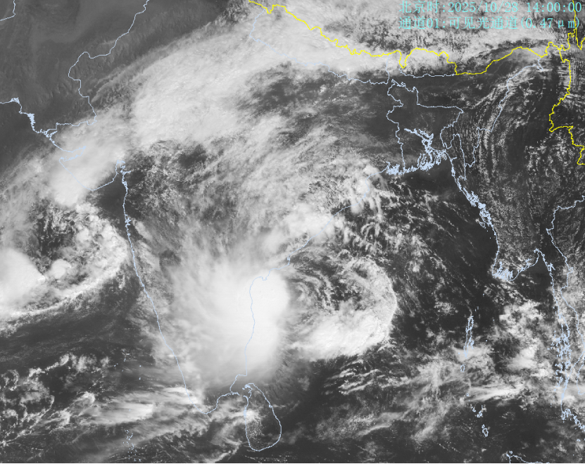 圖1 衛星可見光監測圖像(北京時間2025年10月28日14時00分)